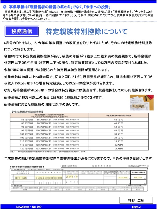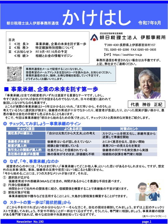 通信25年9月号【特定親族特別控除について 他】 - 朝日税理士法人 伊那事務所
